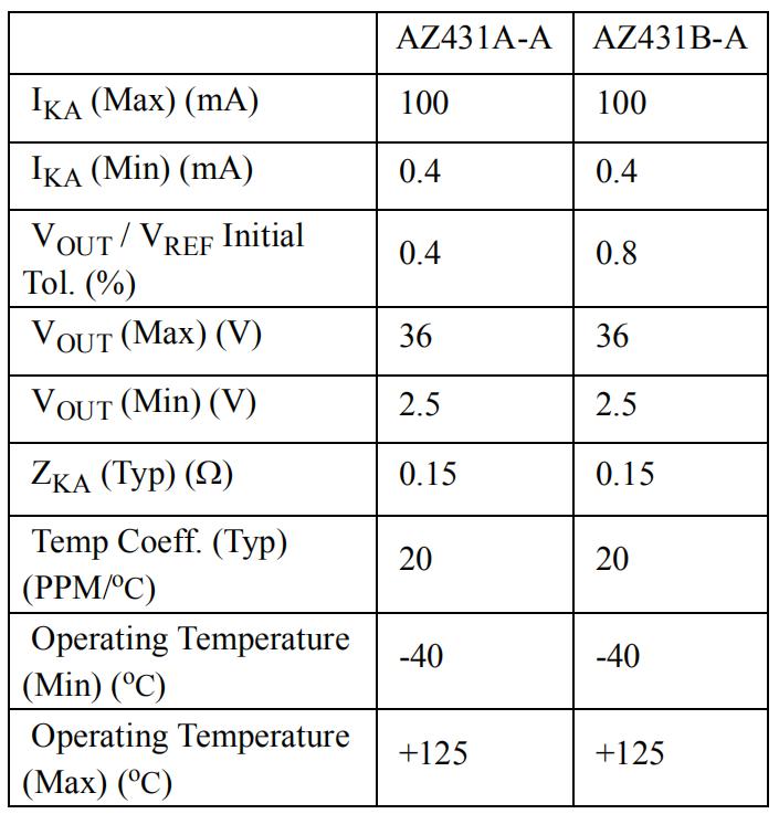 ¡¡¡¡AZ431-Aµçѹ»ù׼оƬ¿É¿Ø¾«ÃÜÎÈѹԴµçѹ²î£º0.4%ºÍ0.8%¡£
