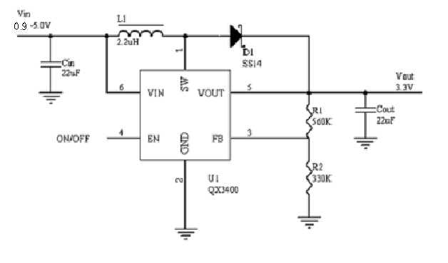 QX3400Ìṩ2.5Vµ½5.0VµÄÊä³öµçѹ£¬²ÉÓÃÄÚ²¿Í¬²½¿ª¹Ø£¬ÎÞÐèÐ¤ÌØ»ù¶þ¼«¹Ü¾ÍÄÜÌṩ¸ßЧµÄת»»Ð§ÂÊ¡£