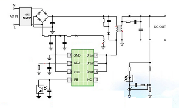 ÄÚÖ÷åÖµµçÁ÷²¹³¥µç·£¬¿ÉÒÔʹ²»Í¬½»Á÷µçѹÊäÈëʱ¼«ÏÞ·åÖµµçÁ÷Ò»Ö¡£»¹¿ÉÒÔͨ¹ýµ÷½Ú¶Ëµç×èµ÷½Ú¼«ÏÞÊä³ö¹¦ÂÊ¡£Éϵçʱ£¬·åÖµµçÁ÷²¹³¥×î´ó£¬È»ºóÖ𽥴ﵽƽºâ£¬¿ÉÒÔ¼õСÔÚÉϵç¹ý³ÌÖбäѹÆ÷µÄÓ¦Á¦£¬·ÀÖ¹±äѹÆ÷±¥ºÍ¡£ µç·ÄÚ²¿¼¯³ÉÁ˸÷ÖÖÒ쳣״̬±£»¤¹¦ÄÜ¡£°üÀ¨Ç·Ñ¹Ëø¶¨£¬¹ýѹ±£»¤£¬¹ýÔØ±£»¤£¬Âö³åÇ°ÑØÏûÒþ£¬ÔÏßȦ¹ýÁ÷±£»¤ºÍζȱ£»¤¹¦ÄÜ¡£Ôڵ緷¢Éú±£»¤ÒԺ󣬵ç·¿ÉÒÔ²»¶Ï×Ô¶¯ÖØÆô£¬Ö±µ½ÏµÍ³Õý³£ÎªÖ¹¡£