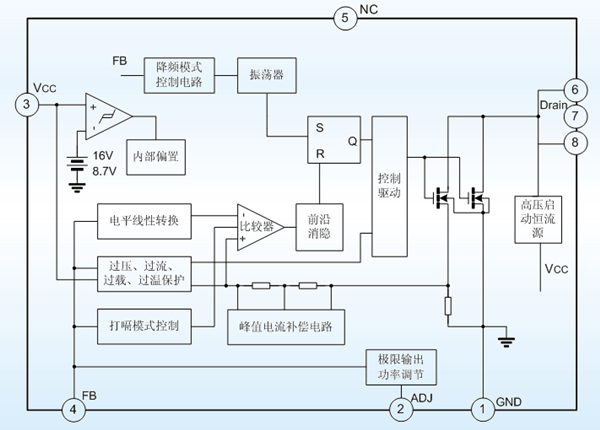 SDH6964ÄÚÖøßѹÆô¶¯ºãÁ÷Ô´£¬µÍ´ý»ú¹¦ºÄ<40mW£¬Æô¶¯µçÁ÷µÍ£¬ÓжàÖÖ¹¤×÷ģʽ¡£ÔÚÇáÔØÇé¿öÏ£¬¹¤×÷ÔÚPFMģʽ£¬¿ÉÒÔÌá¸ßת»»Ð§ÂÊ¡£ÔÚ´ý»úģʽÏ£¬µç·½øÈë´òàÃģʽ£¬´Ó¶øÓÐЧµØ½µµÍµç·µÄ´ý»ú¹¦ºÄ¡£