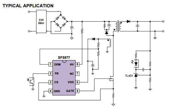 SF5877ÊÇÒ»¿î¸ßÐÔÄÜ£¬µÚ¶þ´ú׼гÕñ£¨ QR- | | TM£© PWM¿ØÖÆÆ÷ÀëÏß·´¼¤Ê½µçԴת»»Æ÷Ó¦Óá£ÄÚÖÃרÓеÄQR- | | TM¼¼ÊõÓë¸ßˮƽµÄ±£»¤¹¦ÄÜ£¬Ìá¸ßÁË¿ª¹ØµçÔ´µÄ¿É¿¿ÐÔºÍÐÔÄÜ¡£