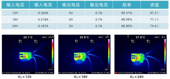 ¡¡¡¡ÎÂÉý²âÊÔ£º²âÊÔÌõ¼þ£ºVin£½12/18/24V£¬ Vout=5V/0.7A£¬ »·¾³Î¶È25¡æ£¬Demo°ë¿ª·Å¡¢ÎÞ·ç»·¾³£»