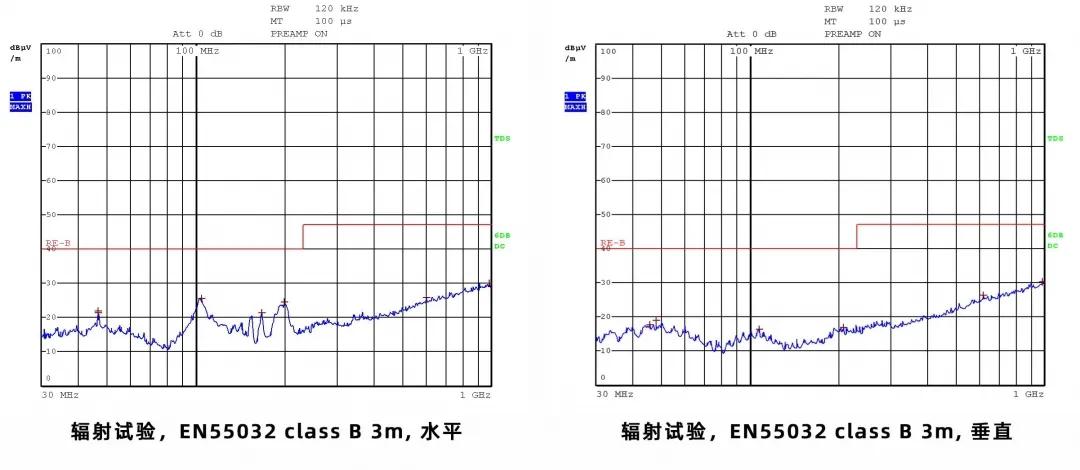 ¡¡¡¡EMC²âÊÔ£ºEMI·øÉäÂú×ãEN55032 Class B±ê×¼ÒªÇó£¬Ô£Á¿´óÓÚ15dB¡£