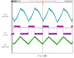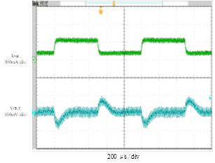 ¡¡¡¡²âÊÔÌõ¼þ£ºVin£½12V£¬ Vout=5V£¬ Iout=0.175A~0.525A£»²âÊÔ½á¹û£º¶¯Ì¬ÏìÓ¦Vpp =180mV£»