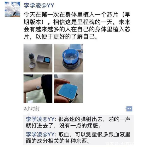 ¡¡¡¡¹úÄÚÖªÃûÖ±²¥Æ½Ì¨ÄÉ˹´ï¿ËÉÏÊй«Ë¾YY´´Ê¼ÈËÀîѧÁ裬½üÈÕÔÚÆäÅóÓÑȦ·ÖÏíµÄÔÚÊÖ±ÛÉÏÖ²ÈëоƬµÄÏûÏ¢£¬ÒýÆðÁ˹㷺¹Ø×¢£¬ÕâÆäʵÊÇÒ»¸ö½¡¿µ¼ì²âµÄоƬ£¬ÀîѧÁè±íʾ“ÏàÐÅÕâÊÇÀï³Ì±®µÄÒ»Ì죬δÀ´»áÓÐÔ½À´Ô½¶àµÄÈËÔÚ×Ô¼ºµÄÉíÌåÀïÖ²ÈëоƬ£¬ÒÔ±ãÓÚ¸üºÃµÄÁ˽â×Ô¼º¡£”