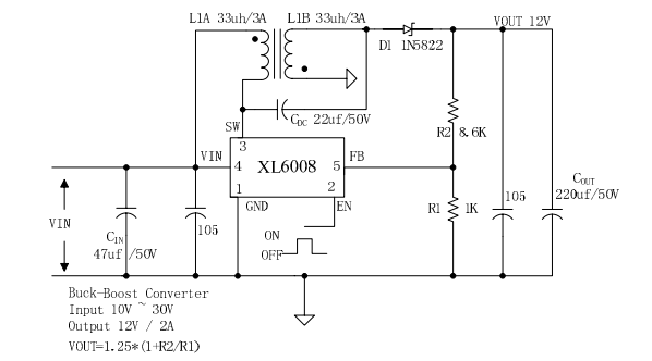 如果要求输出电流在3A以内,那么可以用xl6008,这款宽输入范围,电流模式,能够产生或正或负的输出电压的DC / DC转换器,它的输入电压范围是5V~32V,输出电压调节范围是60V。12V输出的实用电路如图1.