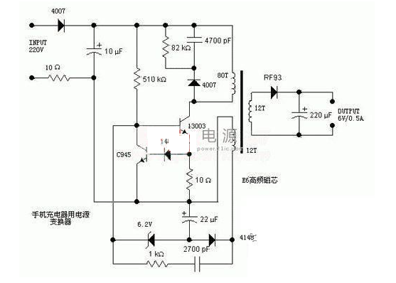¶øÏ·½µÄ1KΩµç×è¸ú´®ÁªµÄ2700pFµçÈÝ£¬ÔòÊÇÕý·´À¡Ö§Â·£¬´ÓÈ¡ÑùÈÆ×éÖÐÈ¡³ö¸ÐÓ¦µçѹ£¬¼Óµ½¿ª¹Ø¹ÜµÄ»ù¼«ÉÏ£¬ÒÔά³ÖÕñµ´¡£ÓұߵĴμ¶ÈÆ×é¾ÍûÓÐÌ«¶àºÃ˵µÄÁË£¬¾¶þ¼«¹ÜRF93ÕûÁ÷£¬220uFµçÈÝÂ˲¨ºóÊä³ö6VµÄµçѹ¡£Ã»ÕÒµ½¶þ¼«¹ÜRF93µÄ×ÊÁÏ£¬¹À¼ÆÊÇÒ»¸ö¿ìËٻظ´¹Ü£¬ÀýÈçÐ¤ÌØ»ù¶þ¼«¹ÜµÈ£¬ÒòΪ¿ª¹ØµçÔ´µÄ¹¤×÷ƵÂʽϸߣ¬ËùÒÔÐèÒª¹¤×÷ƵÂʵĶþ¼«¹Ü¡£ÕâÀï¿ÉÒÔÓó£¼û1N5816¡¢1N5817µÈÐ¤ÌØ»ù¶þ¼«¹Ü´úÌæ¡£